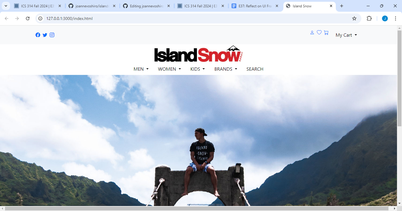 During the “E35: Island Snow with Bootstrap 5” exercise, we were given a final reference image to base on if our webpage was properly structured. We were informed that this exercise wasn’t aimed to make us able to perfectly recreate the website but rather to get to know the different functions and components that come with Bootstrap 5. Quite a lot of the elements from the “real” Island Snow website seemed to have been dumbed down to help us have an easier time to recreate the site. We were also introduced to the navigation bar and the things that could be implemented regarding that, such as the dropdown menu for the “My Cart” menu item element. Another notable point of what Bootstrap can do is the icons that are easily accessible and easily implemented within the navigation bar.